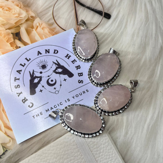 Rose Quartz Oval Round Pendant by Crystall and Herbs