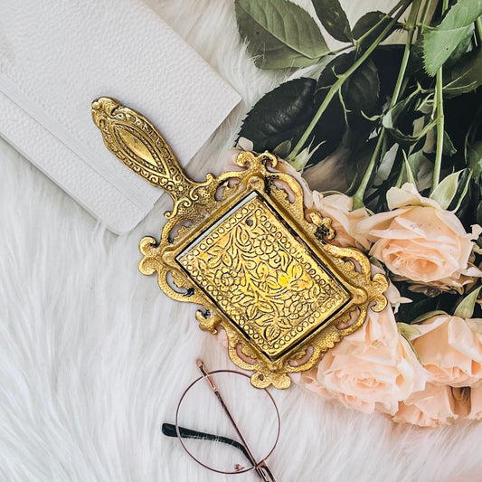 Antique Golden Manifestation Glamour Mirror By Crystall and Herbs